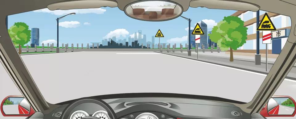 右侧标志警告距前方有人看守铁路道口150米。